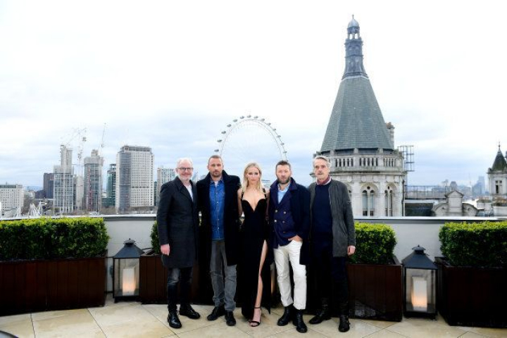 Como se puede desprender del vestuario de los actores, hacía frío en Londres. De hecho, la máxima era de nueve grados. Sin embargo, mientras Francis Lawrence, Matthias Schoenaerts, Joel Edgerton y Jeremy Irons posan con abrigo, Jennifer Lawrence lo hace con un vestido negro escotado y de tirantes.