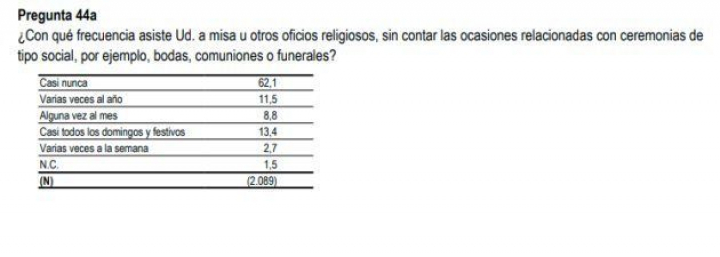 Pero entre los católicos, son muy pocos los que reconocen ser practicantes. De hecho, un 62,1% admite no ir casi nunca a misa.