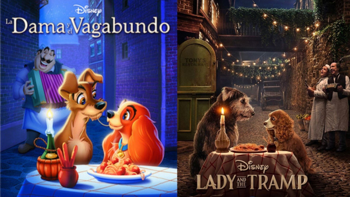 El póster con animales reales del 'remake' de 'La dama y el vagabundo' es igual que el original