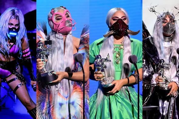La cantante fue la protagonista indiscutible de la edición de este domingo de los MTV Video Music Awards celebrados de forma semipresencial por la covid-19. La intérprete de temas como Shallow arrasó con cinco galardones, pero sus llamativas mascarillas fueron las auténticas ganadoras de la noche.