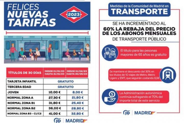 El PP de Ayuso reparte folletos arrogándose el mérito de las nuevas tarifas del transporte