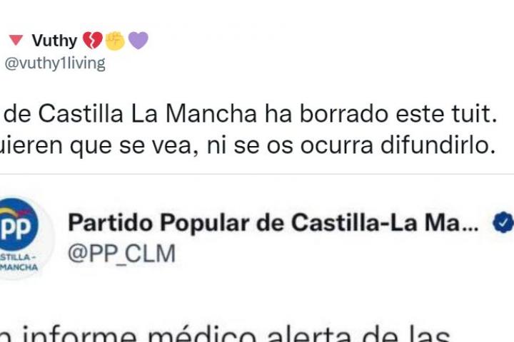 La propia cuenta del PP de Castilla-La Mancha ha borrado el tuit para intentar eliminar el rastro, pero como ha quedado comprobado en Twitter, ha sido demasiado tarde.