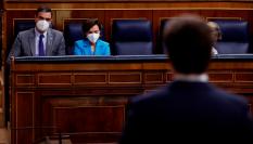 El presidente del Gobierno, Pedro Sánchez, en la segunda sesión del debate de moción de censura.