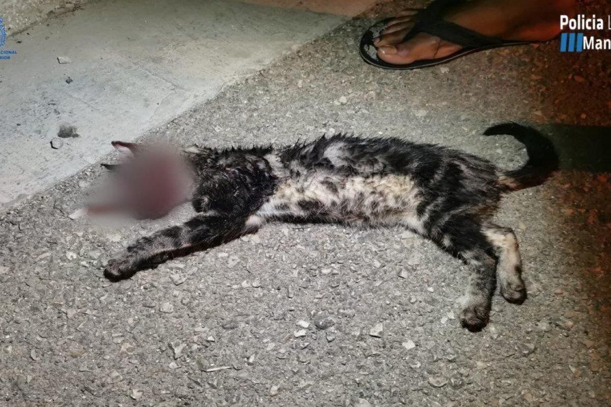 La Policía ha destacado que, en un momento dado, uno de los jóvenes, cuando tenían al gato atado con una cuerda, comenzó a meter los dedos en los ojos del animal, logrando sacar fuera de la cuenca orbital uno de ellos, y acabando con su vida. Una vez que acabaron con su vida dejaron al felino en la vía pública y un vecino lo metió en un contenedor.