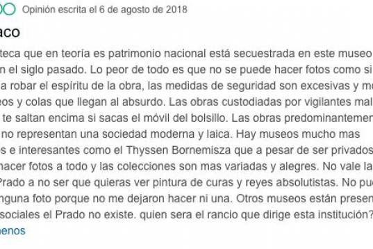 Finalmente esta iniciativa no solo hará mejor “mi” museo; todo el que reciba nueva obra mejorará su propuesta y, por lo tanto, su atractivo, mejorando inevitablemente la propuesta cultural y turística de la ciudad. Se mire por donde se mire, esta idea que pone en marcha el Museo Nacional del Prado es el bien absoluto.