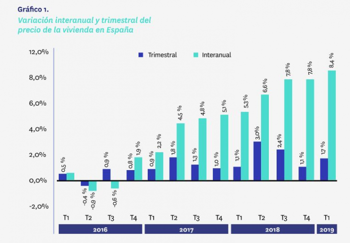 El precio de las casas lleva 30 meses consecutivos al alza. Además, esta subida en marzo de 2019 es la mayor que se ha producido en los últimos 14 años. No se veían incrementos así desde 2007, en plena burbuja inmobiliaria.