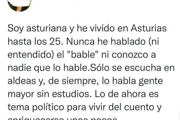 “Soy asturiana y he vivido en Asturias hasta los 25. Nunca he hablado (ni entendido) el ‘bable’ ni conozco a nadie que lo hable”, comenzaba diciendo la mujer, que aseguraba que “solo se habla en aldeas” y “lo habla gente mayor sin estudios”.