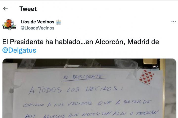 Los rellanos de las comunidades de vecinos se han convertido en algo parecido al tablón de anuncios de los institutos y de las universidades. La cuenta @LiosdeVecinos se encarga de recopilar, con bastante éxito, algunos de los mensajes que se pueden ver en las zonas de comunes de algunos edificios.