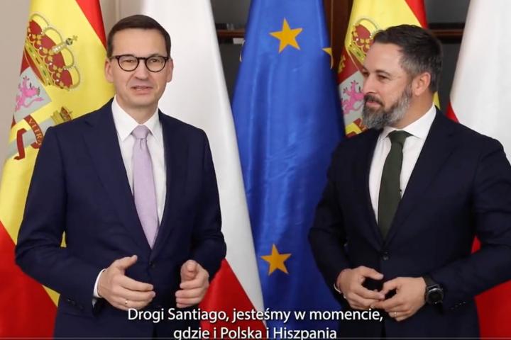 “Polonia y nuestro amigo y aliado Morawiecki son un ejemplo en la defensa de la libertad, la soberanía de las naciones y la protección de las fronteras”, ha afirmado Abascal. Morawiecki estuvo presente el pasado mes de octubre en Viva22 celebrado por Vox en Madrid y también acudió a la Cumbre de Madrid, el encuentro de los “patriotas y conservadores europeos” celebrado el pasado mes de enero.