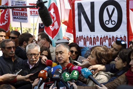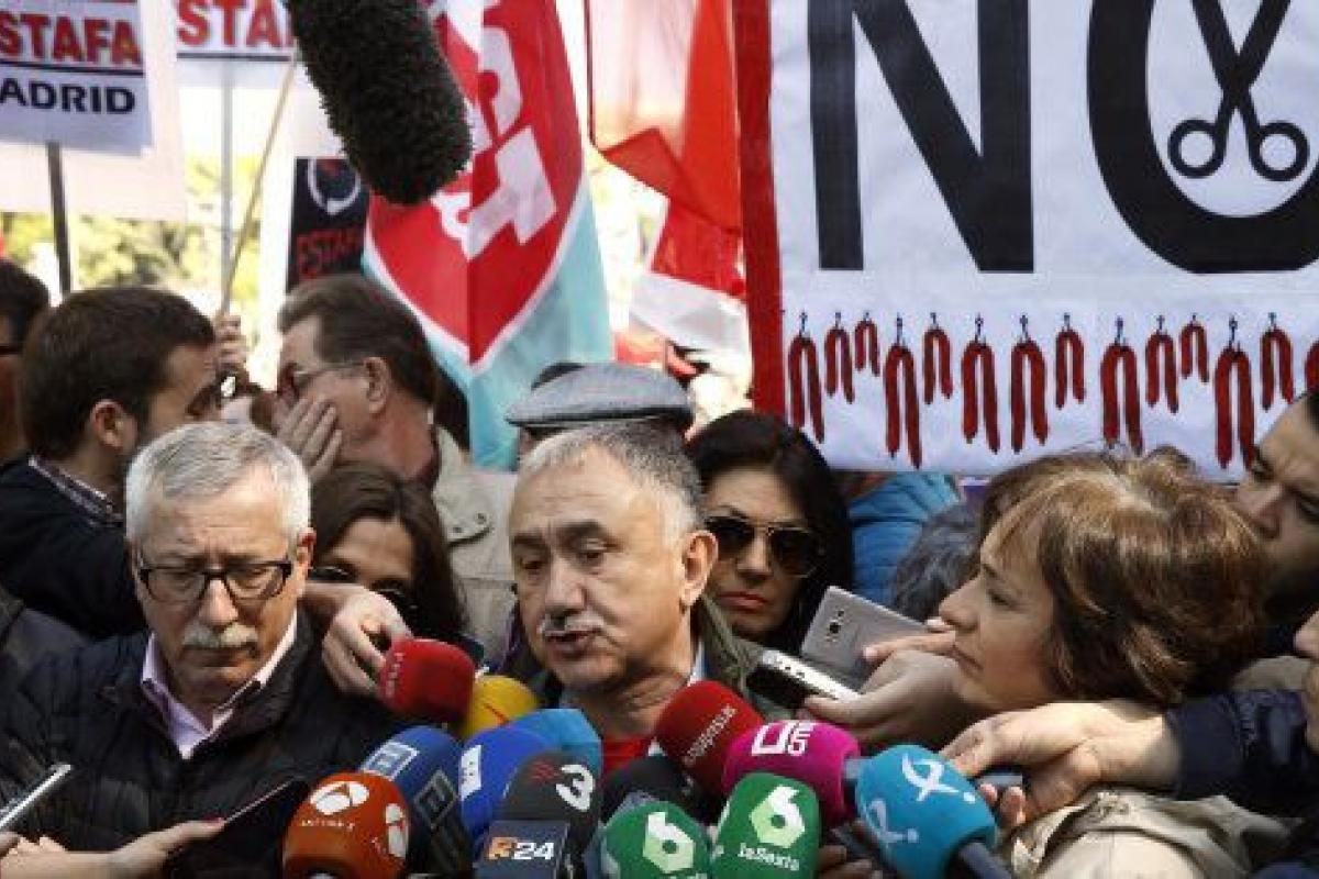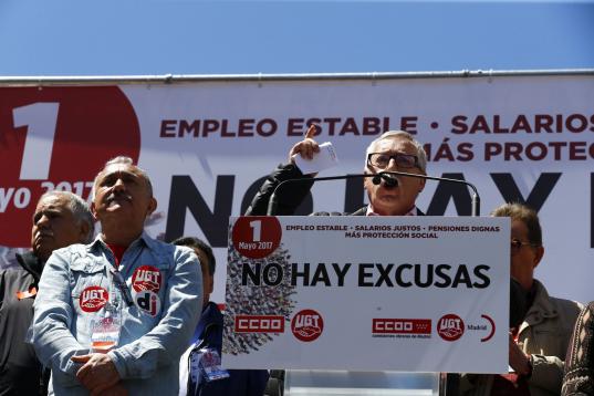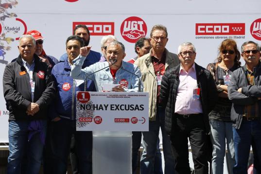 Los líderes sindicales han puesto de relieve esta idea durante los discursos con los que han cerrado en la Puerta del Sol la manifestación convocada en Madrid, bajo el lema "No hay excusas. A la calle", con motivo del 1 de mayo, y a la que han asistido unas 12.000 personas, según la delegación de Gobierno y 50.000 según los sindicatos.