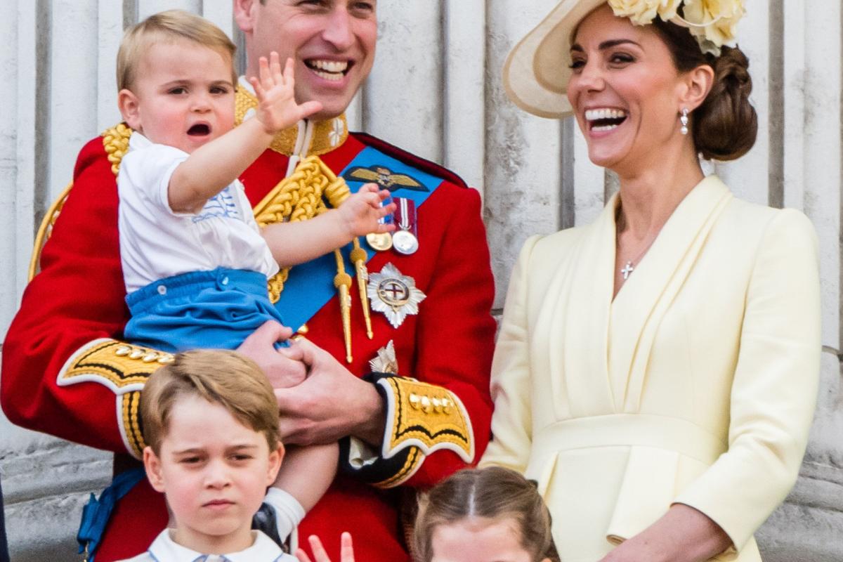 LONDON, ENGLAND - JUNE 08: Prince Louis, Prince George, Prince William, Duke of Cambridge, Princess Charlotte and Catherine, Duchess of Cambridge appear on the balcony during Trooping The Colour, the Queen's annual birthday parade, on June 08, ...Samir Hussein via Getty Images