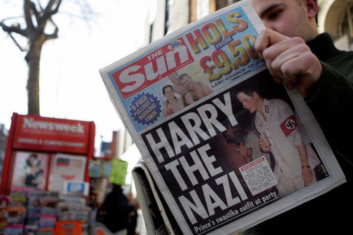 La foto de Harry, vestido de soldado nazi con una esvástica en el brazo, dio la vuelta al mundo, y fue portada de The Sun. Harry tenía 20 años cuando sucedió esto, y se achacó el ¿error? a su juventud. El príncipe Guillermo, de entonces 22 años, fue disfrazado de león.
