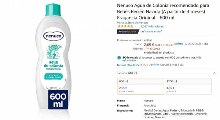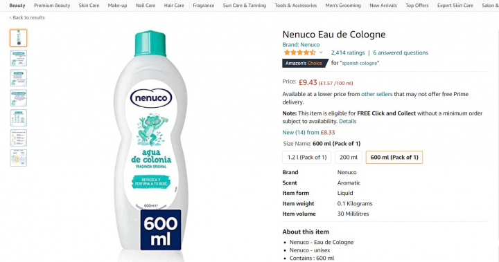 Por otro lado, si comparamos los precios del un bote de 600ml de colonia Nenuco vemos que en España se puede obtener por 2,65€ mientras que en Reino Unido encontramos ese mismo bote a 11,21€. Una diferencia abismal teniendo en cuenta que se trata del mismo artículo.
