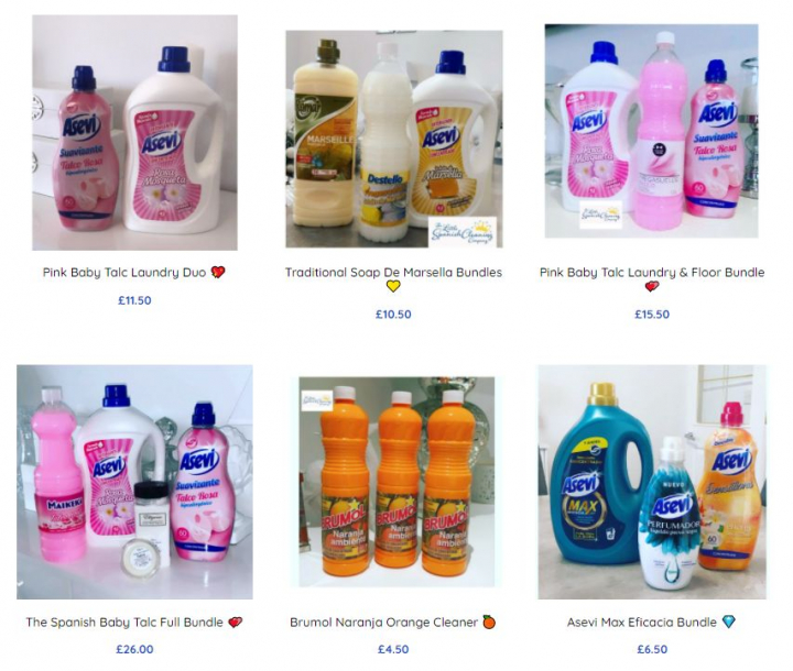 Al realizar una búsqueda en Google, se pueden encontrar multitud de páginas británicas dedicadas a la venta de este tipo de género, desde suavizantes hasta friegasuelos, limpia cristales o ambientadores. Especialmente de Nenuco.