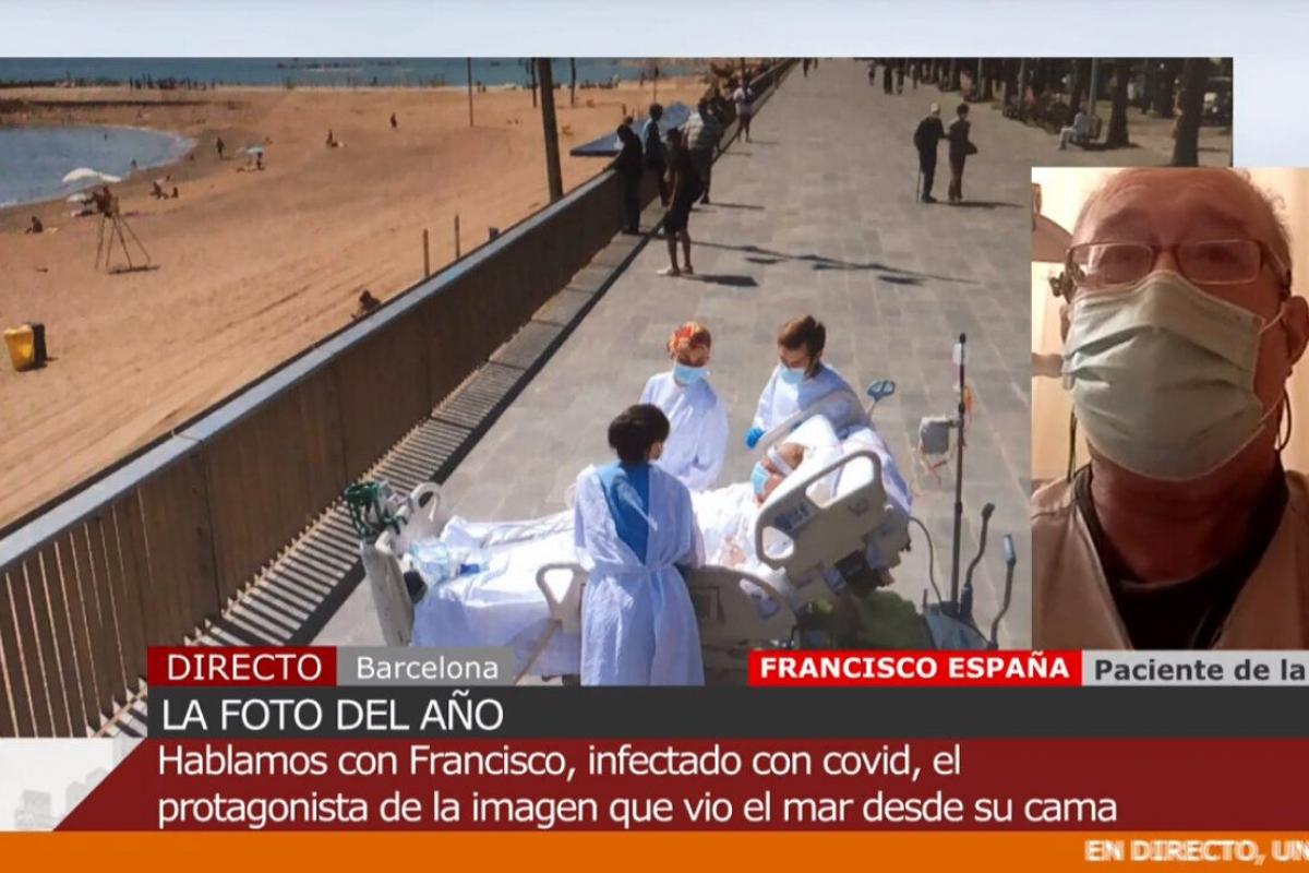 Francisco España, el protagonista de la imagen, charló este jueves con Cuatro al día mientras se termina de recuperar en un centro sociosanitario de su larga estancia en la UCI.