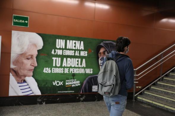 El PSOE mueve ficha y ha denunciado este miércoles en los tribunales a Vor por “odio y racismo” por el cartel electoral que la extrema derecha colocó en el Metro de Madrid.