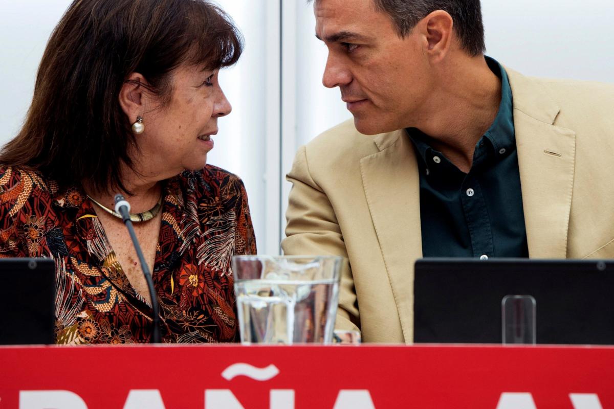 “Ahora no hay tiempo que perder, hay que seguir avanzando”, dice el cartel que, con fondo rojo y letras blancas, recorre de arriba a abajo tres alturas del número 70 de la madrileña calle Ferraz y que ha sido colgado a 48 horas de que en este mismo lugar se celebre el Comité Electoral del PSOE, que marcará la estrategia de campaña.