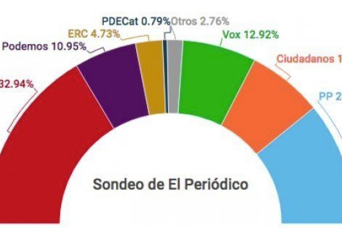 El Periódico ha publicado el primer sondeo electoral tras el anuncio de convocatoria de elecciones realizado por Pedro Sánchez este viernes, que se celebrarán el próximo 28 de abril.