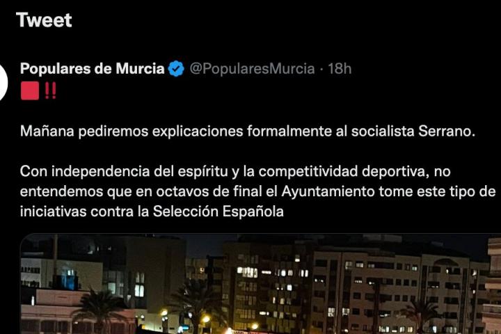 En el tuit, incluso, llegan a asegurar que pedirán explicaciones formales al alcalde y socialista José Antonio Serrano. A consecuencia de lo creído, en la publicación también se han referido al partido del Mundial de Qatar que nada tenía que ver con el tema.