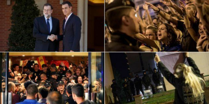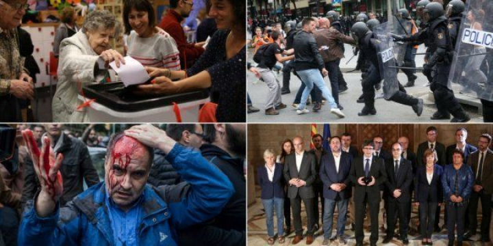 Era la hora de la verdad, el momento clave del procés independentista. El gobierno catalán organiza, con la complicidad de una parte importante de la sociedad, un referéndum declarado ilegal por el Tribunal Constitucional. Los Mossos prefieren no mirar y no actuar (cumplen órdenes). La Policía y la Guardia Civil se lanzan para impedirlo (también cumplen órdenes). Las imágenes de violencia frente a ciudadanos que ejercen una resistencia pasiva son brutales, y dan la vuelta al mundo. El conflicto catalán entra en órbita global. Los primeros resultados: 2.262.424 votos, un 90% a favor del 'sí' a la república catalana, a la ruptura con España.