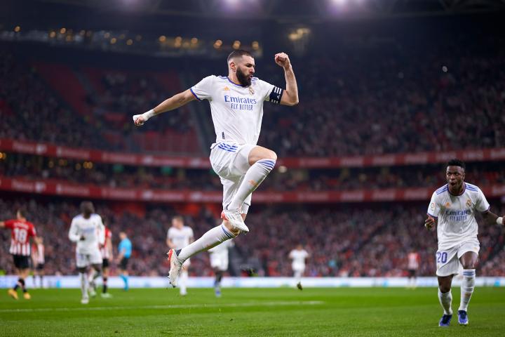 El Real Madrid cerró el año 2021 con un triunfo de campanillas en su visita al Athletic Club (1-2), un partido adelantado de la jornada 21 en la Liga Santander, gracias a un doblete tempranero de Karim Benzema que hizo olvidar todas las dificultades del cuadro blanco, que afrontó el duelo con hasta ocho bajas entre lesionados y positivos por coronavirus.