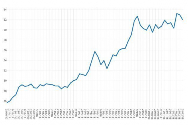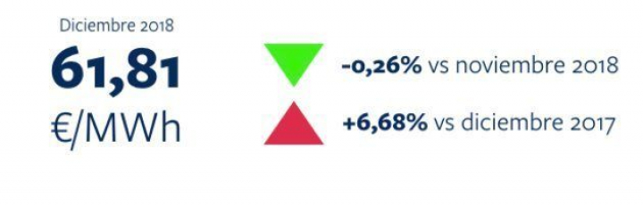 La segunda mitad del año ha vivido los precios más elevados. En concreto, el mes de diciembre de 2018 ha terminado con un precio de 61,81 euros por megavatio hora (MWh). Esta cifra supone una ligera bajada del 0,26% respecto a noviembre, pero un 6,7% más que el mismo mes del año 2017.