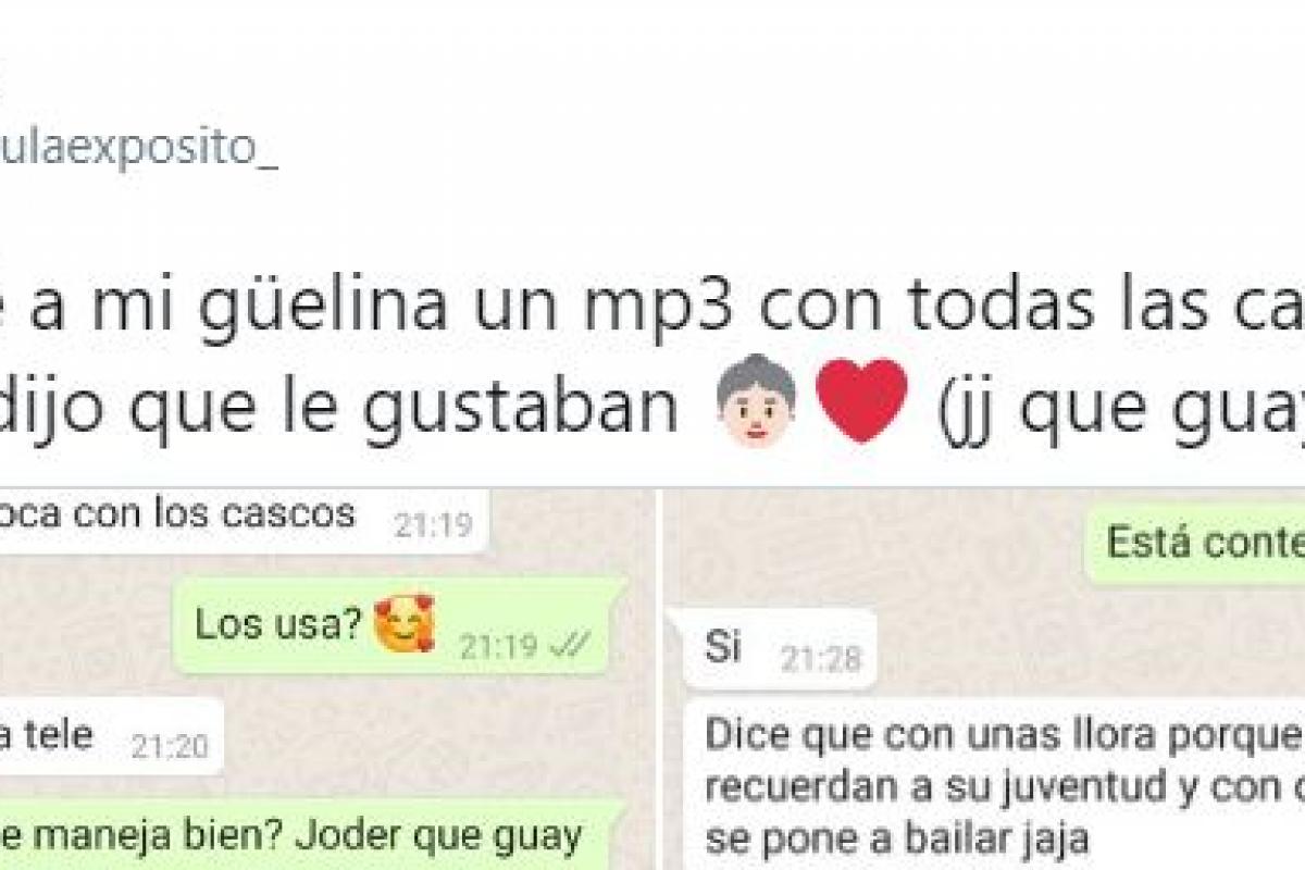 La tuitera Paula ha publicado la conversación que tuvo con un familiar suyo después de que le hiciera un único y personalizado regalo a su abuela: un MP3 cargado con canciones que le gustan.