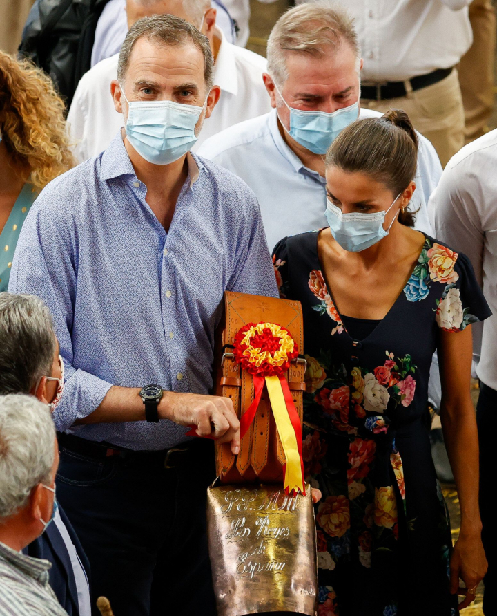 Después de que un grupo les bailase una jota montañesa, Felipe y Letizia han recibido un presente que ha dejado al rey con una cara de lo más expresiva: un cencerro gigante con un grabado.
