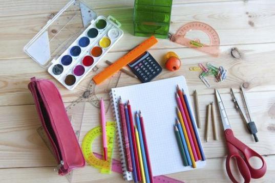 Todo tipo de material escolar como cilindros con lápices de colores, gomas, sacapuntas, cuadernos, reglas... Fue en la inauguración de la exposición de Fernando II de Aragón. El rey que imaginó España y la abrió a Europa en Zaragoza.