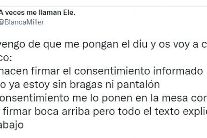 Su testimonio, que se ha hecho viral, relata diferentes momentos que ha vivido y pone el foco en la falta de información que hay sobre estos temas. A la usuaria, como ha contado, le hicieron firmar el consentimiento informado cuando ya estaba “sin bragas ni pantalón”.