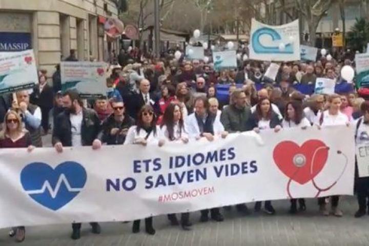 Este domingo la plataforma Mos Movem convocó una manifestación en Palma, a la que acudieron unas 2.500 personas, en contra del requisito del catalán para trabajar en el sector sanitario, una medida que, por ejemplo, que no está vigente en Cataluña.