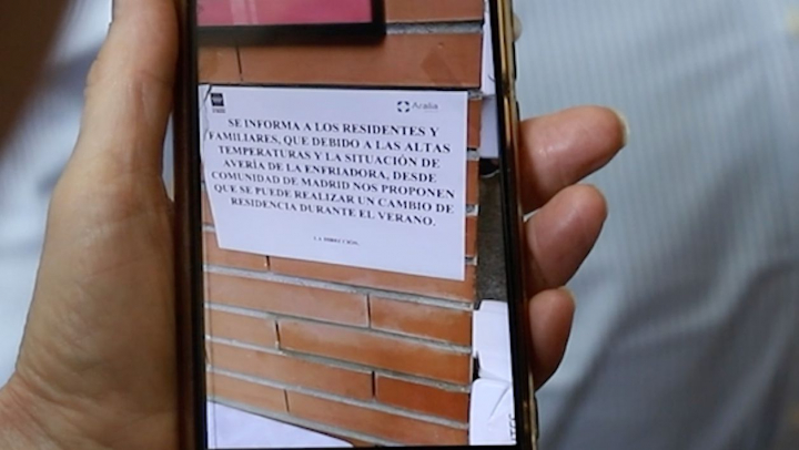 Según han mostrado los familiares de Plaza a los periodistas, este fue el mensaje que pusieron los responsables de la residencia ante la avería del aire acondicionado en pleno verano: “Se informa a los residentes y familiares que, debido a las altas temperaturas y la situación de avería de la enfriadora, desde Comunidad de Madrid nos proponen que se puede realizar un cambio de residencia durante el verano”.