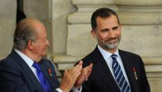 Tras hacer efectiva la abdicación, el rey Juan Carlos abraza a su hijo Felipe, en Madrid en junio de 2014.
