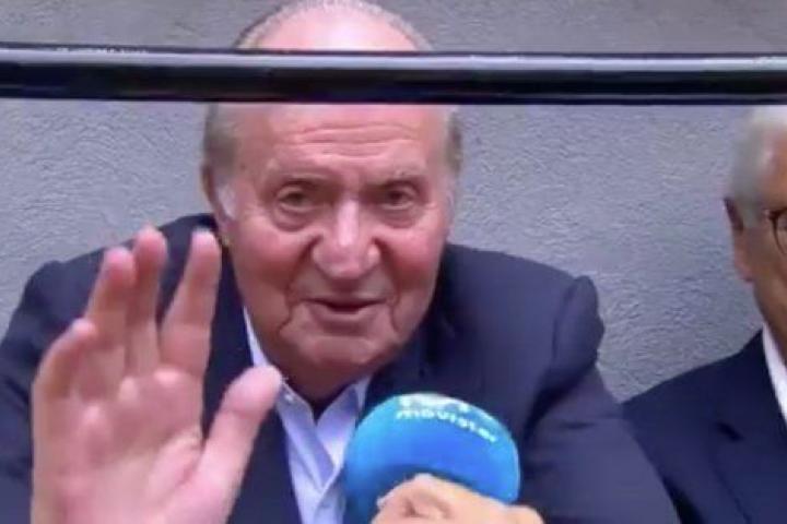 El monarca emérito, que vio los toros desde uno de los palcos del callejón del moderno coso de Illumbe, acompañado de su hija la infanta Elena, fue entrevistado en directo en Movistar+.