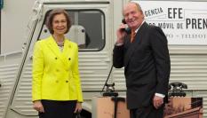 Los reyes Juan Carlos y Sofía, lloran durante el acto de entrega de los restos mortales del padre del rey, don Juan de Borbón el 3 de abril de 1993.