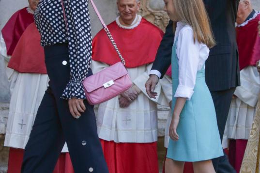 Los reyes Felipe VI y Letizia, sus hijas —la princesa Leonor y la infanta Sofía—, y los reyes eméritos Sofía y Juan Carlos asistieron el pasado domingo a la misa que se celebraba en la Catedral de Palma con motivo del Domingo de Resurrección.