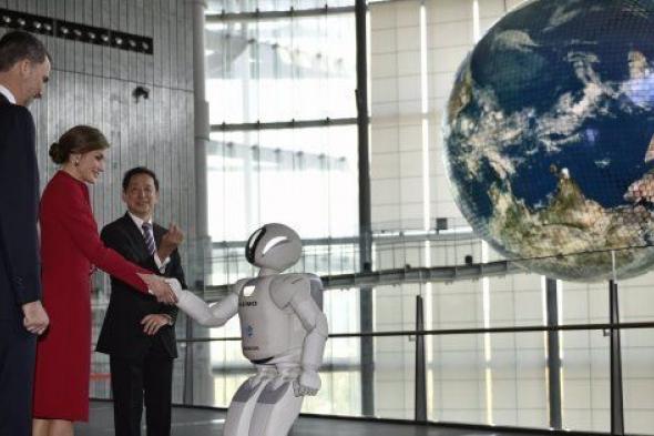 El popular androide Asimo ha dado la bienvenida a los reyes de España con un apretón de manos en su visita al Museo de la Ciencia Emergente y la Innovación (Miraikan), durante la que han conocido los principales proyectos de cooperación científica bilateral y los últimos avances de Japón en este terreno.