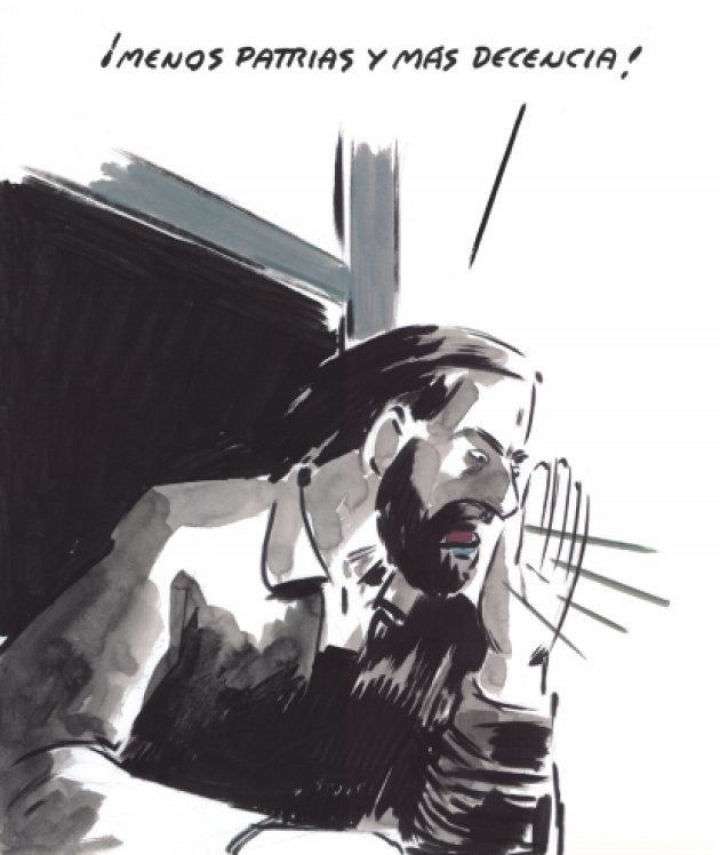 Sentía la necesidad de contar lo que está ocurriendo a través de sus viñetas. Aunque las posiciones nacionalistas se vistan de "izquierdistas y progresistas", las describe como "reaccionarias" y quería dejar clara su posición en contra de la secesión y los que cavan esas grietas.