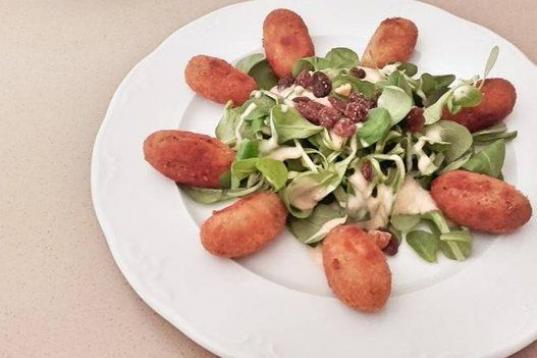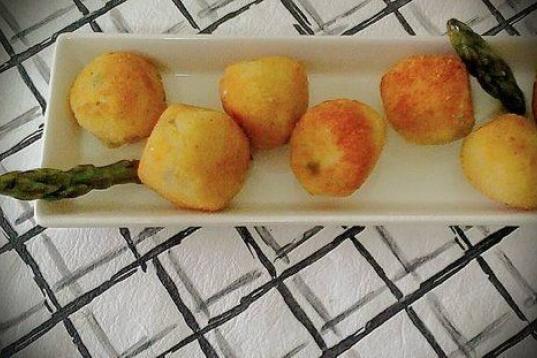Su autor asegura que estas croquetas suponen una combinación de ingredientes: queso de cabrales, nueces y cebolla.