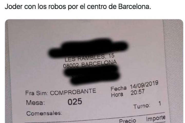 El usuario Coco Soler (@VeroticaSoler) ha difundido la factura que tuvo que pagar en el local Tapas I Apat, en Las Ramblas. En ella se puede comprobar los altos precios del bar.