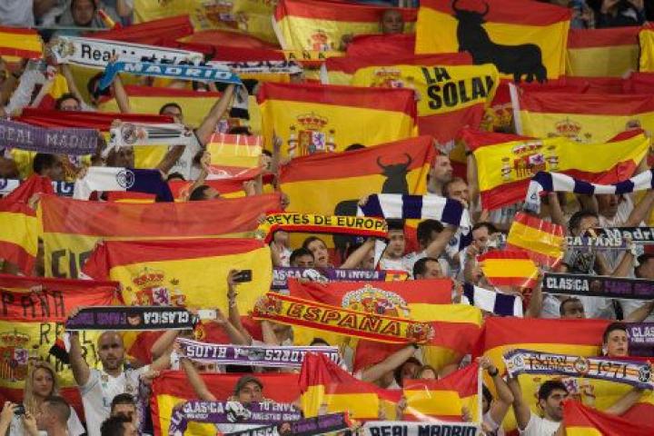 Infinidad de banderas de España han decorado este domingo 1 de octubre las gradas del Santiago Bernabéu. En el mismo día en que se celebraba el referéndum de Cataluña, los aficionados al club blanco han querido mostrar su apoyo a la unidad de España llenando el campo de banderas españolas. En lugar de bufandas merengues, el partido disputado entre el Real Madrid y el Español se ha teñido de rojo y amarillo.