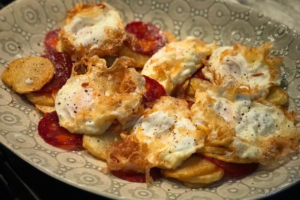 El secreto para hacer unos buenos huevos fritos con patatas y chorizo