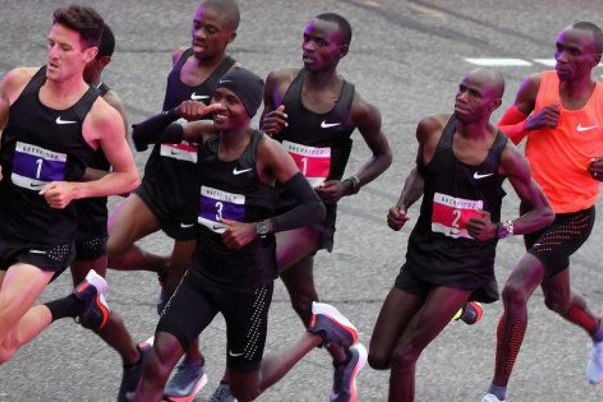 El keniano Eliud Kipchoge, considerado uno de los mejores maratonianos de la historia, completó esa distancia en 2 horas y 25 segundos, quedándose a sólo 26 segundos de romper la barrera. Lo hizo en un reto llamado #Breaking2 en el que Nike lo había dispuesto todo para conseguirlo: las zapatillas deportivas más revolucionarias, un coche liebre a menos de 15 metros y 24 corredores de talla mundial prestando ayuda a la estrella y dándose relevos cada pocos kilómetros.