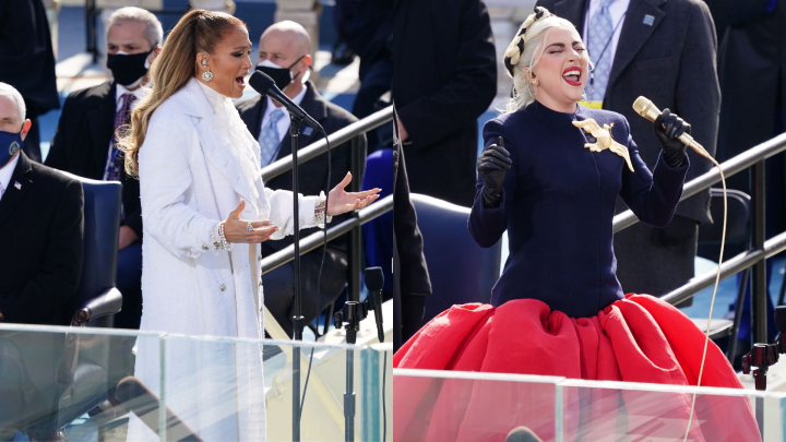 Jennifer Lopez quiso reivindicar la América multicultural hablando en español durante su actuación, mientras que Kamala Harris lo hizo con su look mandando un mensaje de unión. En esta línea, Lady Gaga, estrella del acto encargada de cantar el himno nacional estadounidense, también mandó un potente mensaje con su vestido.
