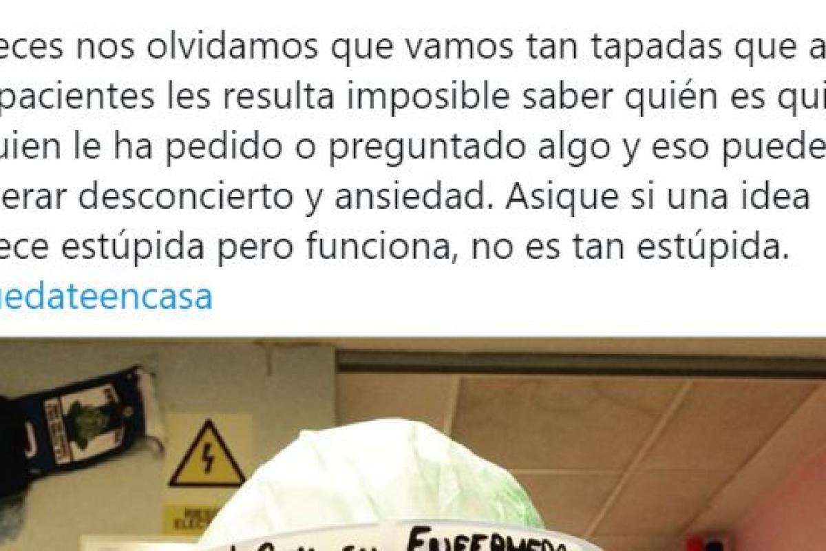 A veces nos olvidamos que vamos tan tapadas que a los pacientes les resulta imposible saber quién es quién, a quien le ha pedido o preguntado algo y eso puede generar desconcierto y ansiedad. Asique si una idea parece estúpida pero funciona, no es tan estúpida”, ha escrito.