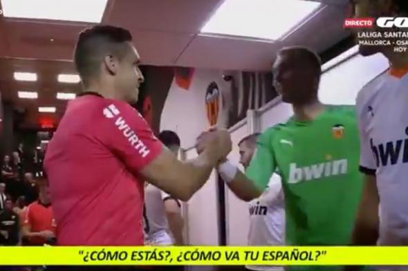 El guardameta del Valencia saludó al árbitro antes del partido ante el Sevilla y le hizo esta confesión.
