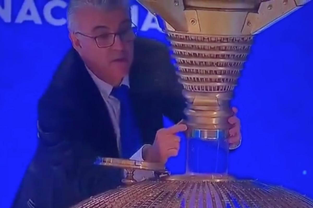 Cuando empezaron a caer las bolas al bombo, el operario abrió su mano derecha y dejó caer lo que llevaba entre sus dedos, una imagen que despertó sospechas en las redes sociales, como Twitter, donde los usuarios empezaron a hablar de un supuesto ‘tongo’.