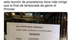 La cuenta de Twitter @LiosdeVecinos ha compartido este miércoles un curioso cartel que les envío una seguidora tras encontrarlo en su portal.