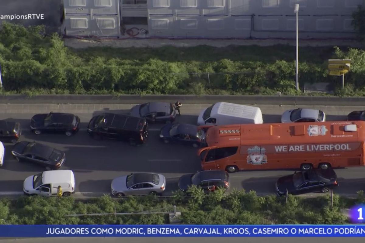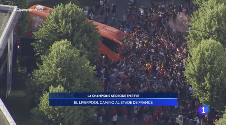 Tras la intervención de la Policía francesa, que ha abierto camino, el autobús se ha encontrado con otro problema: avanzar entre los miles de aficionados del Liverpool que se reunían a la entrada del campo animando a los suyos.