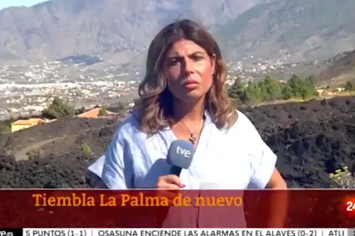El susto de una reportera de RTVE en pleno directo por un temblor en La Palma: su cara lo dice todo